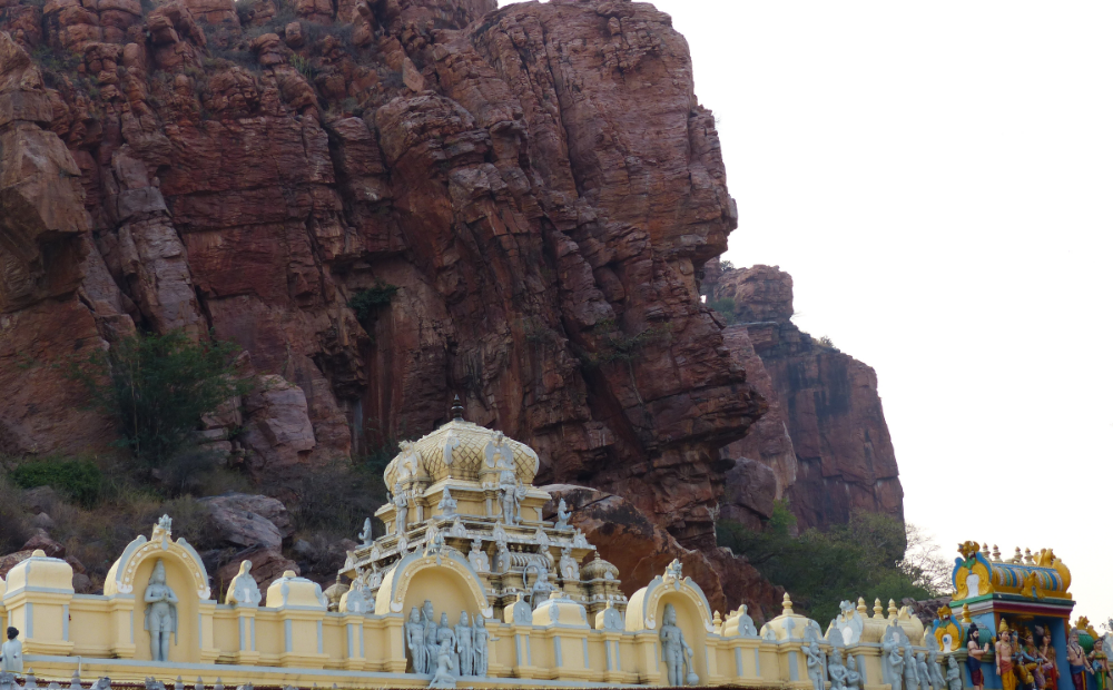 The history of Kshetram dates back to the period of the Ramayana, Treta Yuga. According to the legend, the god Rama himself had drawn the picture of Hanuman on the rock with his arrow while resting at this place, and was receiving the hospitality of Vayu, the god of the wind and father of Hanuman.