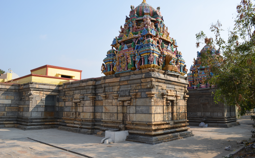 In 1804, William Karo, a British Collector, experienced a miraculous event at the temple. After being saved from a collapsing bungalow by a mysterious girl, later revealed to be Bhavani Vedanayaki Amman, Karo showed his gratitude by offering a gold plate to the temple. Three holes were bored in the temple wall where he prayed, and these relics are carefully preserved to this day.