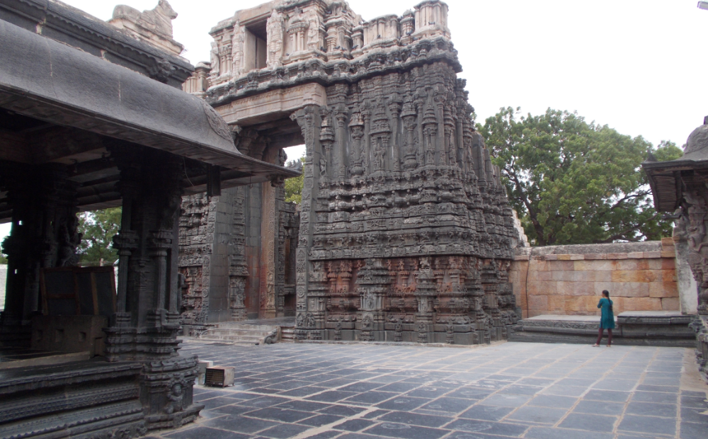 The temple consists of a sanctum, ardhmandapa, and mukhamandapa in an axial line. The temple contains bas relief structures illustrating episodes from Ramayana and Mahabharata.
