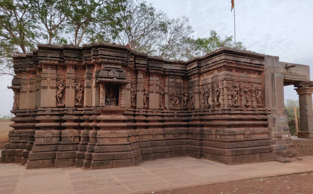 The dancing damsels with rather exaggerated features are heavily decorated with ornaments and attires. The sculptures of the Jalasangvi temple were the source of inspiration for the later Hoysala bracket-figures of Belur, Halebidu and Somanathapura. This Chalukya temple is built on a star-shaped plan.