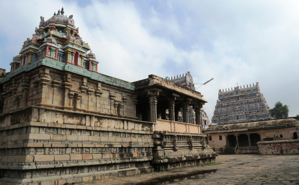 Historical inscriptions found on the temple's south wall provide insight into its origins, indicating that it was built by Kulothunga Chola III to commemorate his successful campaign in North India. These inscriptions reference contributions toward the construction of the Nataraja shrine and mukhamandapa, linking it to other significant temples such as those in Chidambaram, Kanchipuram, Madurai, and Thiruvidamaruthur. Scholars suggest the temple was established around 1176 CE, marking a critical moment in the history of the Chola dynasty.