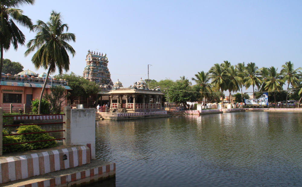 The temple is set against a rocky hill in Pillayarpatti village, accessible from nearby cities like Madurai and Karaikudi. It was built during the early Pandya dynasty and expanded through the centuries, featuring unique rock carvings of Hindu gods and goddesses. Notable among these is the 6-foot bas-relief of Karpaga Vinayagar, whose iconography is distinctive, with a two-handed depiction holding sweets, unlike later four-handed forms.
