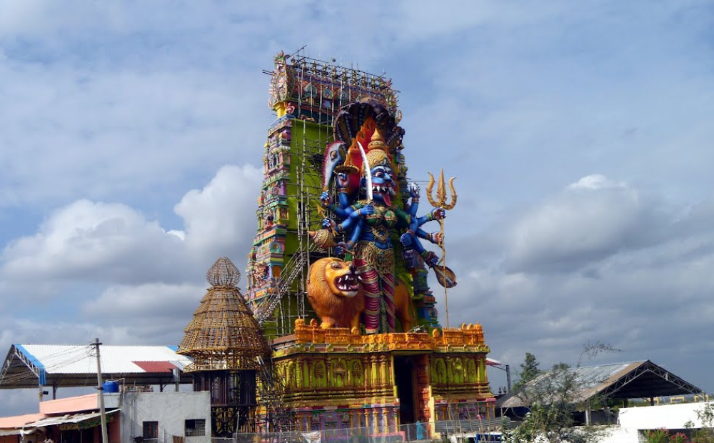 Maa Pratyangira Kalika Alayam, located in Moranapalli, Hosur, Tamil Nadu, is renowned for housing the biggest Pratyangira statue. The towering statue is featured prominently on the temple's rajagopuram, making the temple an iconic spiritual destination. Devotees flock here throughout the week, especially on weekends.