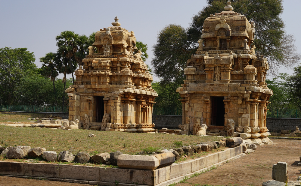 The temples were built to honor the chief and his two wives, Nangai Varaguna Perumanar and Karrali. The northern shrine's basement, resembling a full-blown lotus flower, is an architectural marvel. The central and southern shrines are largely intact, with intricate wall details and a small shrine for Nandi in front.